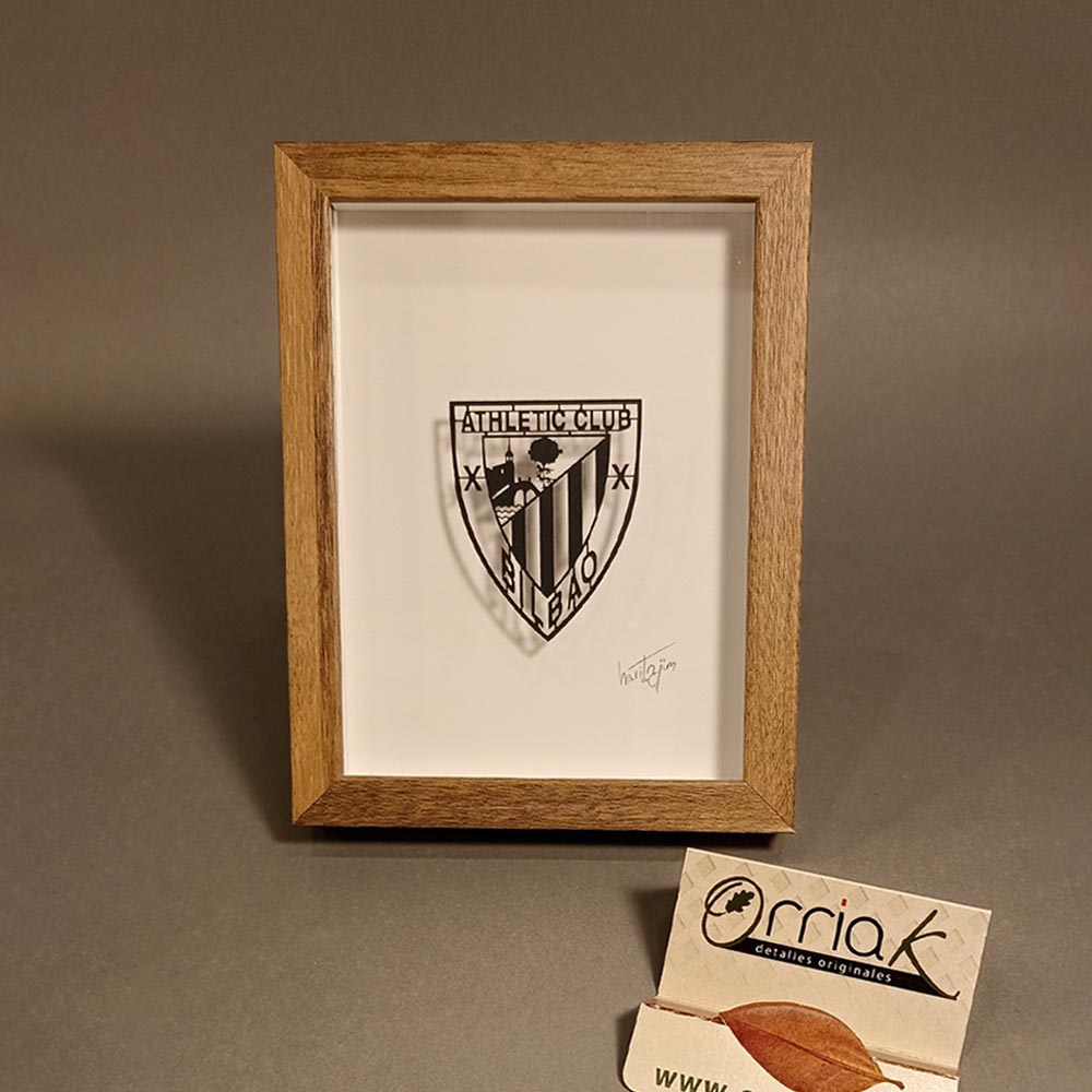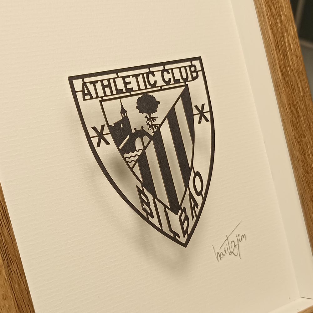 Cuadro con la silueta del Escudo del Athletic recortada en cartulina negra.